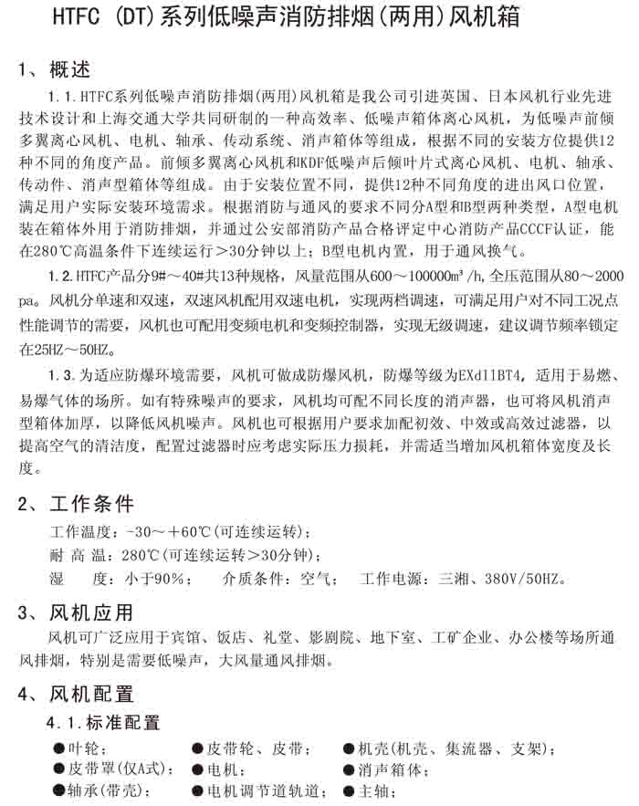 一、HTFC(DT)-I、II、V 系列低噪聲消防排煙(兩用)風(fēng)機(jī)箱
